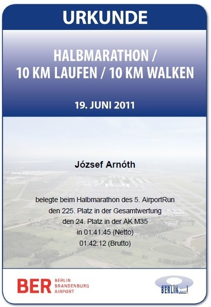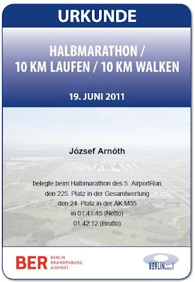A június elejére tervezett Potsdam félmaratonon nem futottam, mert közben úgy alakult, hogy haza tudtunk ugrani Magyarországra. Így, miután visszaértünk, körülnéztem a neten, hol és mikor rendeznek mostanában félmaratont. Nem is figyeltem fel az Airport Run-ra, de másnap jött egy email, hogy engednek még az árból is. Kapóra jött, jelentkeztem. :)