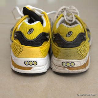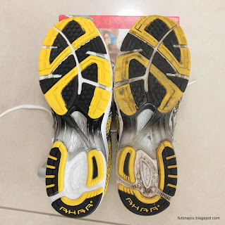 A megtett kilóméterszám ellenére is a külső és belső anyagok a cipőben nagyon jó állapotban vannak, a talpon minimális kopás látszódik. A probléma jelentkezése előtt azt gondoltam, simán elfutok 2000 plusz kilóméterekig a cipőben. De a talp hab (SpEva) törvényszerűen elvesztette a használattól a rugalmasságát. Így is kb. 50%-al túlszárnyalta az általánosan elfogadott 1000 kilóméteres élettartamot amivel futócipőknél nagyjából számolni lehet, úgyhogy nem vagyok elégedetlen. Jó cipő volt, nem tudom miként tudnám továbbhasználni, olyan jó még ránézésre...:)