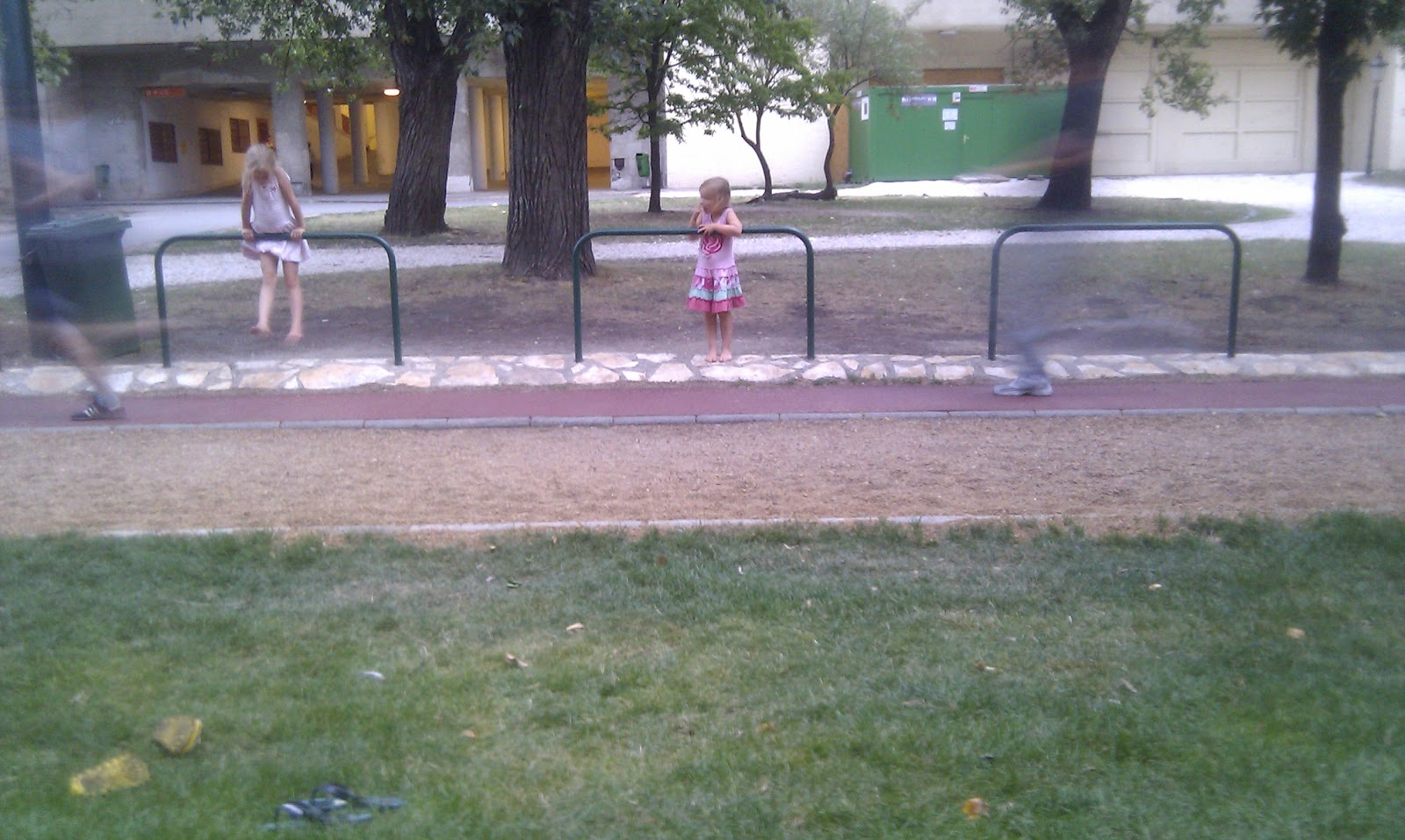 Este hétkor a dagály elött találkoztunk Gyuszival, hogy fussunk egyúttal a Margit szigeten 2 karikát. Még sosem futottam ott, tetszett milyen sok ember futott, egy közepes méretű futóversenyt simán megtöltöttek volna. A gumipálya biztos jó és izület barát, nekem szokatlan volt, inkább a sóderen és betonon futottam mellette. Tök jó, hogy pont van egy játszótér az Árpád híd lehajtójánál, így a lányoknak nem volt idejük unatkozni amíg mi Gyuszival a köröket róttuk. Angéla készített pár fotót , már nem volt túl világos, vicces suhanó futó alakos fotók készültek a lányaim főszereplésével. :-)