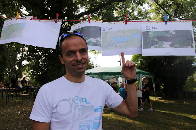 Bevált a sejtésem, hogy megpróbál a frissítőponton faragni az összeszedett hátrányán mert közvetlen mögöttem futva folytattuk a versenyt. A versenytávra nézve jó pozicióban voltam. Gondoltam, ha akar megelőz majd utazok én mögötte az sem baj. De már sejtettem hol vannak a határai az aszfaltos szakasz után, nem számítottam arra, hogy mondjuk állva hagy, legalábbis ennyi km után még nem. :)