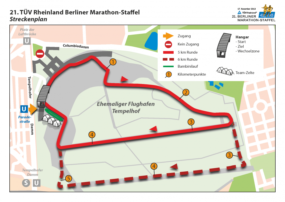 2013-ban is a Tempelhof-reptérből mára Tempelhofer-Freiheit parkká avanzsált hatalmas területen rendezték meg Németország legnagyobb maraton váltó versenyét. Egy hatalmas hangár a versenyközpont a Start, Cél és Váltózóna területtel.