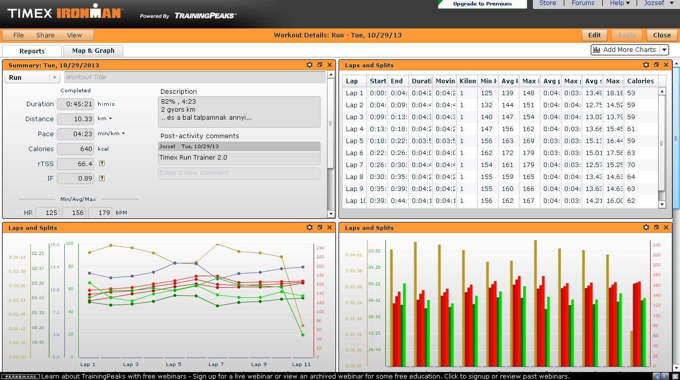Trainingpeaks, ezt a webes szolgáltatást kínálja a Timex az edzéseink online naplózására. Itt tudjuk az edzéseinket kiértékelni, edzés naplót vezetni, statisztikákat nézni az aktivitásunkról. Ingyenes alapszolgáltatás mellett elő lehet fizetni egy fullos verzióra is. Én jól elvagyok az alap verzión. Egy pár kép a programról.