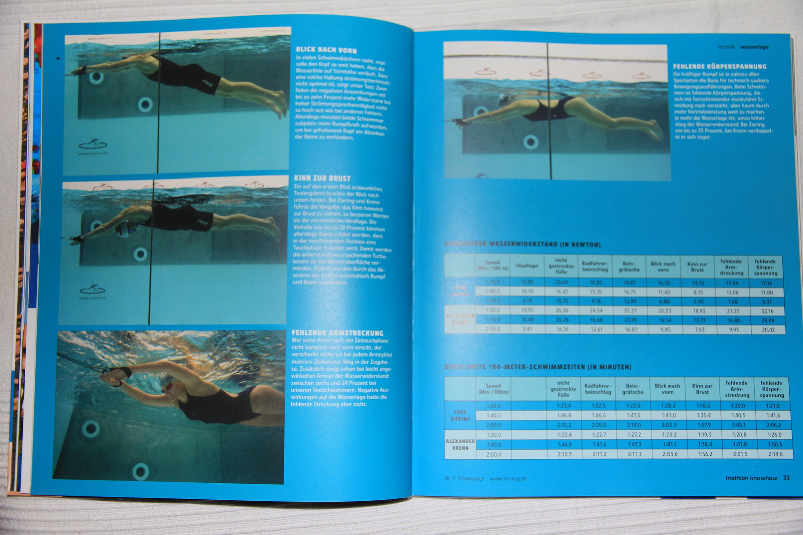 Kaptam karácsonyra egy könyv sorozat pár kötetét, Triathlon Know How a címük. Külön kötetekben foglalkozik a triatlon egy egy fő témakörével. Úszás, Bringázás, Futás, Sport táplálkozás, Felszerelések. Érdekes és hasznos infók vannak bennük. Jelenleg a Sport táplálkozás kötetet olvasom, hú de hasznos! De belelapoztam az úszásba is már. Van benne egy rész a víz ellenállásról. Különböző testartásban és sebességekkel húznak egy úszót a vízben és mérik mekkora erővel kell húzni, vagyis mennyi munka kell a vízellenállás leküzdéséhez. Az adatok beszédesek.